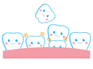学校歯科健診では、主に「歯」、「歯茎」、「歯垢」、「咬み合わせ」、「歯並び」の状態について、問題がないか確認をしています。